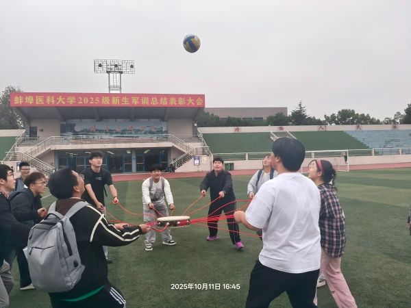 随后进行的“打鼓击球”活动则将现场气氛推向高潮。每组队员需要共同牵拉一个拴着数根绳子的同心鼓,通过协同发力让鼓面击起排球。从最初的东倒西歪、球落满地,到后来的步调一致、连续击打,同学们在一次次尝试中学会了倾听、配合与包容。当鼓面“砰”地一声将球稳稳击向空中,伴随而来的是全队成员激动的欢呼,团队凝聚力的火花在此刻璀璨绽放。
