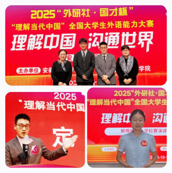 2025年“外研社·国才杯”“理解当代中国”全国大学生外语能力大赛英语组国际传播综合能力赛项全国决赛于12月8日圆满落幕。我校2022级临床医学专业姚镇镇(指导教师:夏娟、张海燕、曹静)、2024级医学影像专业周紫嫣(指导教师:陈晓明、陈晓倩、张劲松)在荣获省级一等奖的基础上再接再厉,于国赛中分获银奖与铜奖,创下我校在该赛事中历史最佳成绩。