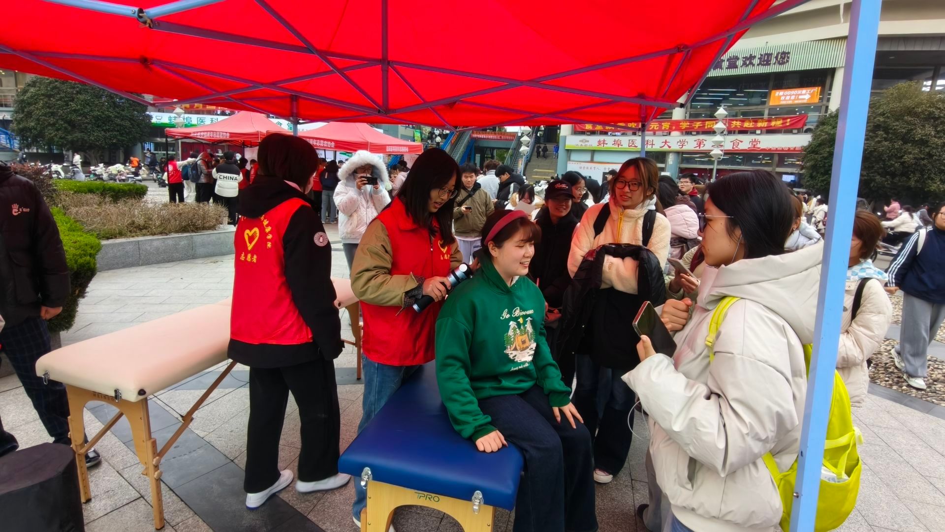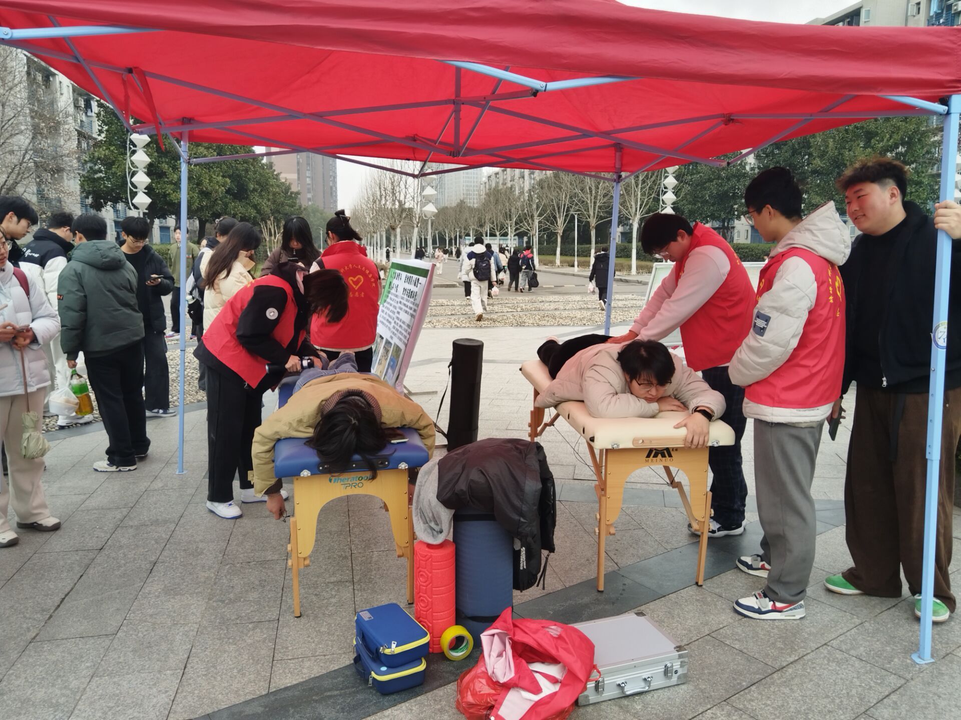 为进一步普及运动康复知识,推动运动康复志愿服务惠及广大师生,35日中午,人文与健康学院青年志愿者协会联合运康学社,在校园内开展“运动康复践志愿、健康守护暖校园”康复放松体验志愿服务活动。学院党委副书记罗丹全程随行指导,为活动有序开展提供现场保障;运动康复专业教师马超全程坐镇,为志愿者实操提供技术指导与专业答疑,确保活动规范、高效、专业。